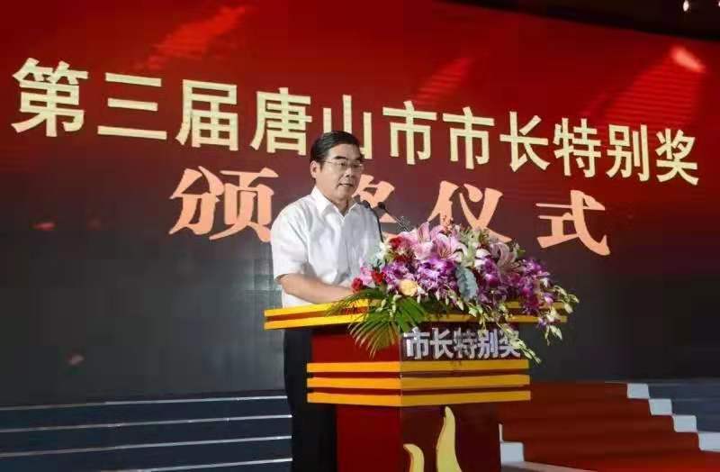 樹立實干坐標,彰顯榜樣力量。8月21日晚,唐山市第三屆“市長特別獎”頒獎活動在南湖國際會展中心舉行。12人(團隊)榮獲唐山市第三屆“市長特別獎”,9人(團隊)榮獲“市長特別獎”提名獎。公司董事長孫任靖參加頒獎晚會并接受市領(lǐng)導(dǎo)頒獎。 省委常委、市委書記王浩出席頒獎活動。市委副書記、市長丁繡峰出席頒獎活動并致辭。市人大常委會主任郭彥洪、市政協(xié)主席胡國輝及市四大班子相關(guān)領(lǐng)導(dǎo)一同出席。王浩、丁繡峰、郭彥洪、胡國輝等與會市領(lǐng)導(dǎo)為獲獎?wù)哳C獎。